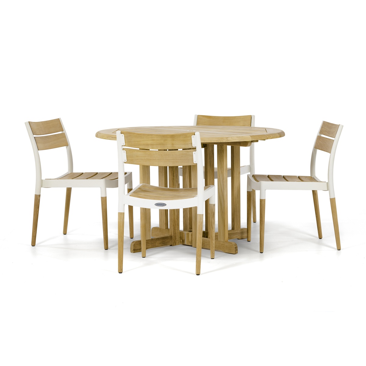Defined by the stunning contrasts of refreshing white powder coated aluminum and the warmth of micro-smooth teak, the Barbuda Bloom Dining Set emanates a chic sense of style whether indoors or out. The contoured backrests and seats of the Bloom Chairs offer lasting comfort even without cushions. With the impeccable strength of powder-coated aluminum and teak, this set will endure the test of time and the outdoors.