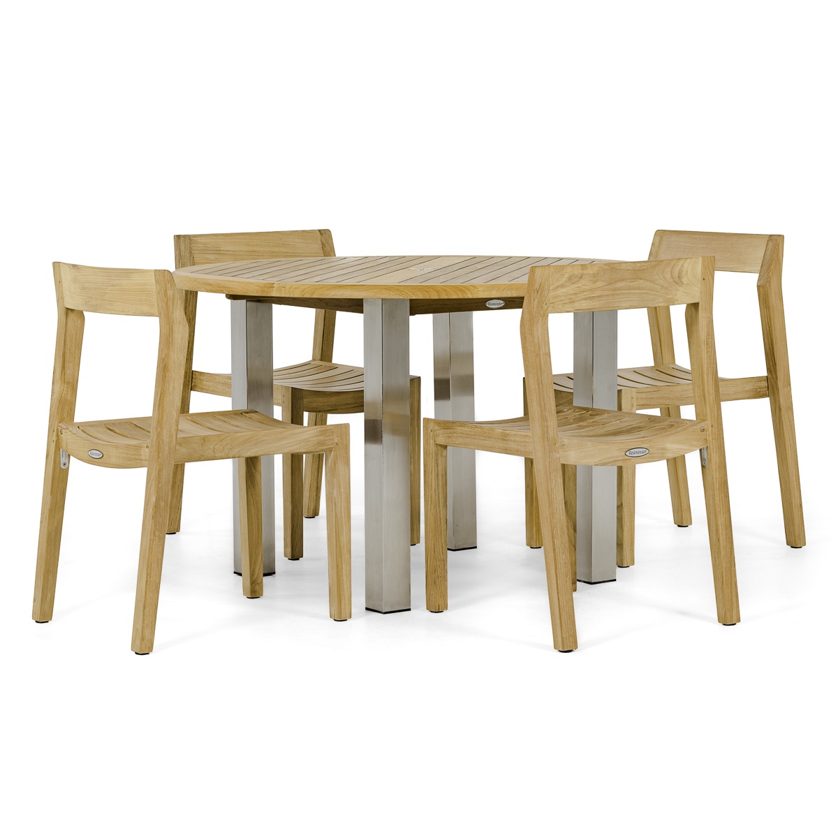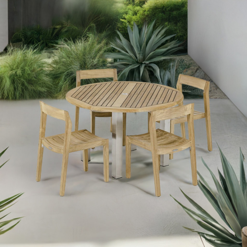 Vogue 4 ft Round Table: Glides Horizon Teak Side Chair: Glides |