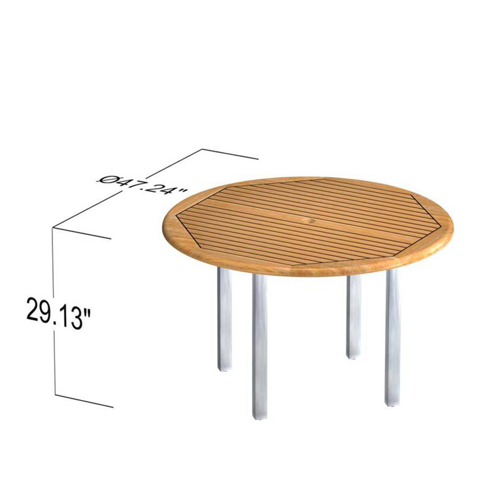 Pairing the geometric lines in the Vogue Round Table with the refreshing contrast of aluminum in the Bloom Chairs, the Vogue Bloom 5 piece Bistro Set makes a simple yet bold statement. The Bloom Dining Chairs offer lasting comfort even without cushions. With the impeccable strength of powder coated aluminum and teak, all pieces will endure the test of time and the outdoors.