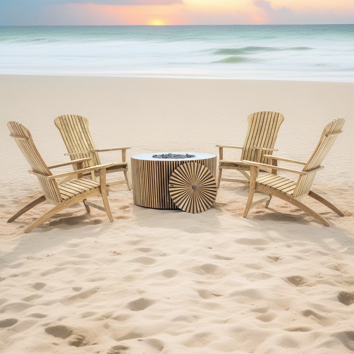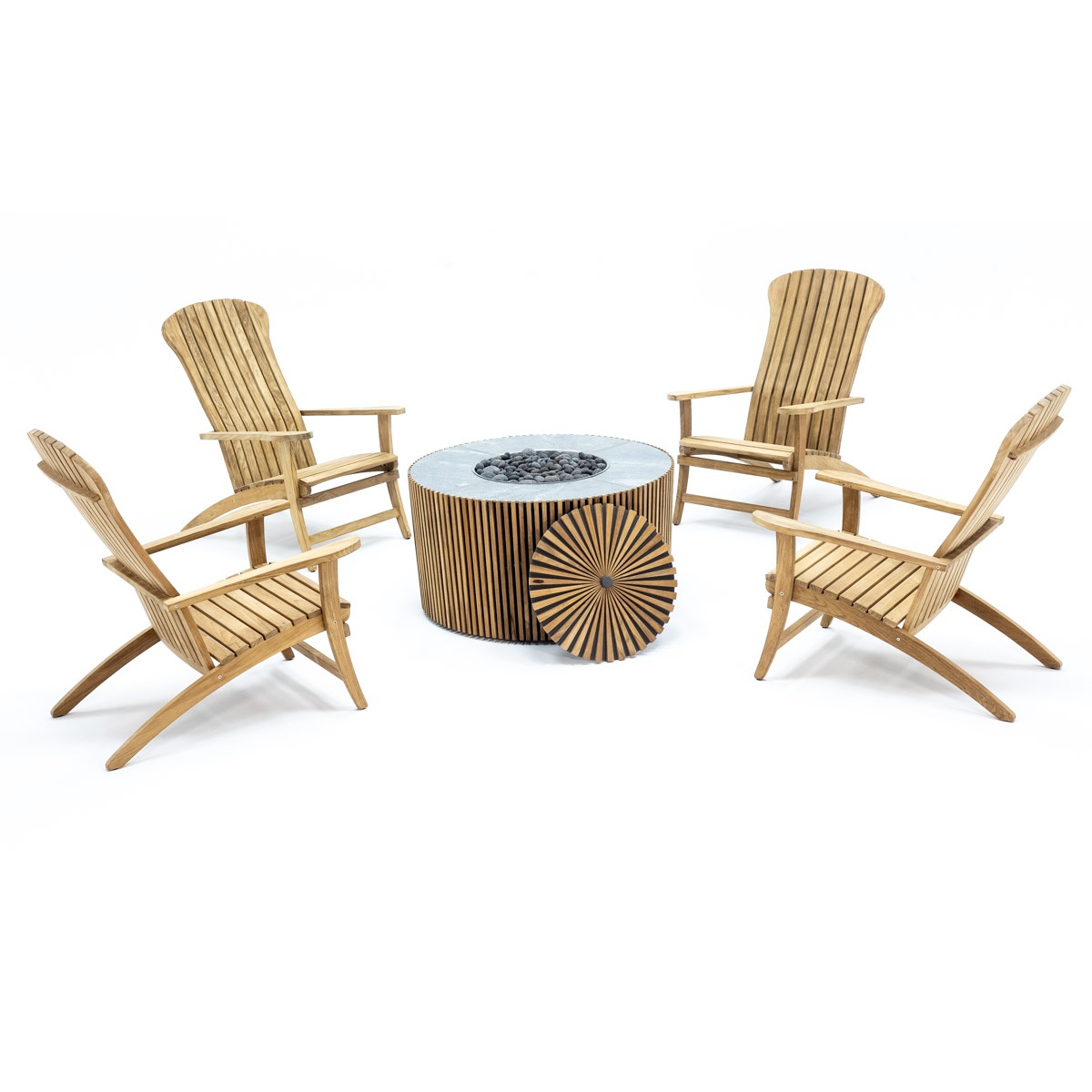 Comes With four Adirondack Chairs and Agora Fire Table. Cushions optional.