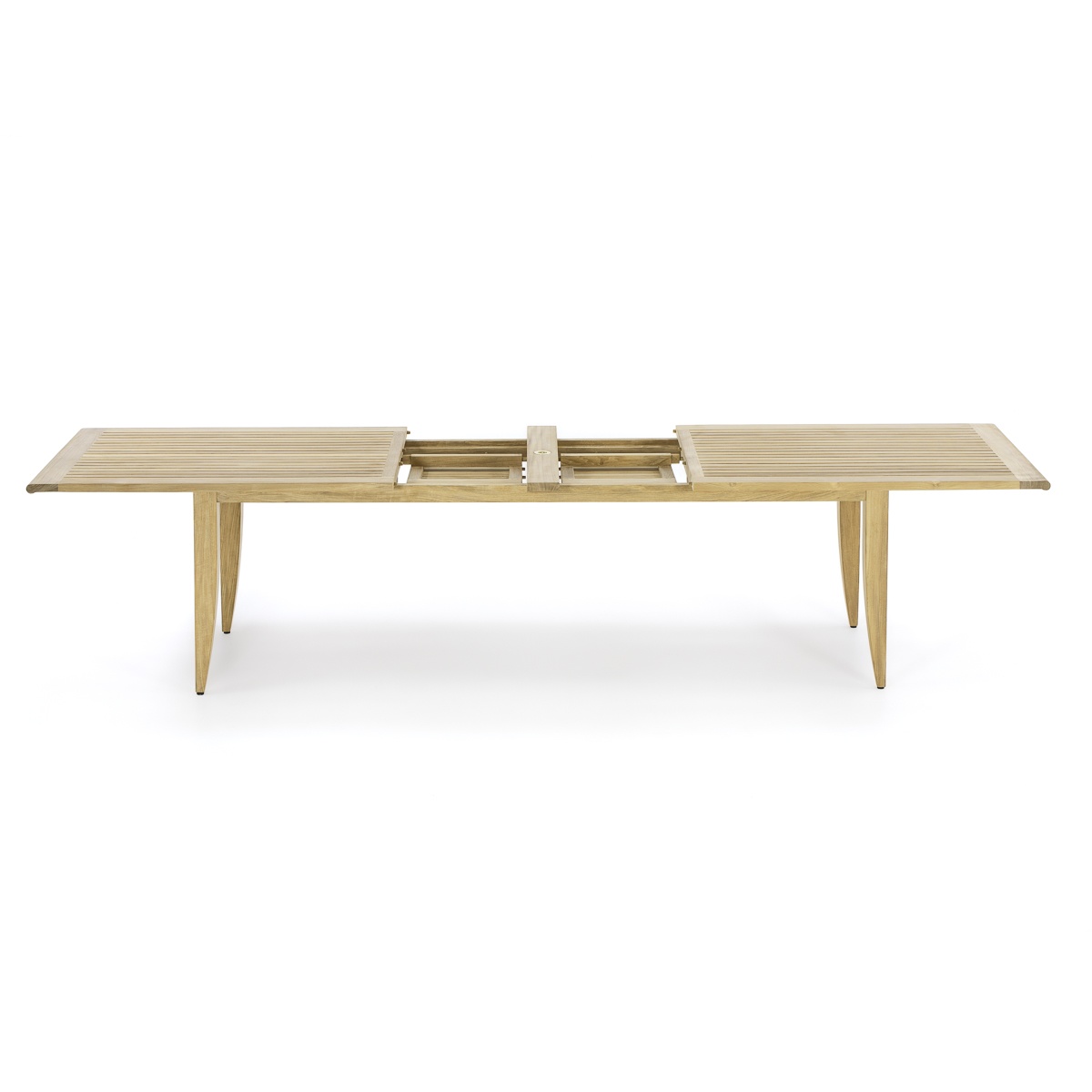 • Grand Laguna table includes a double leaf extension system that extends its seating capacity from 6 to 14 for all occasions. Allows for use of an umbrella in both collapsed and extended positions.