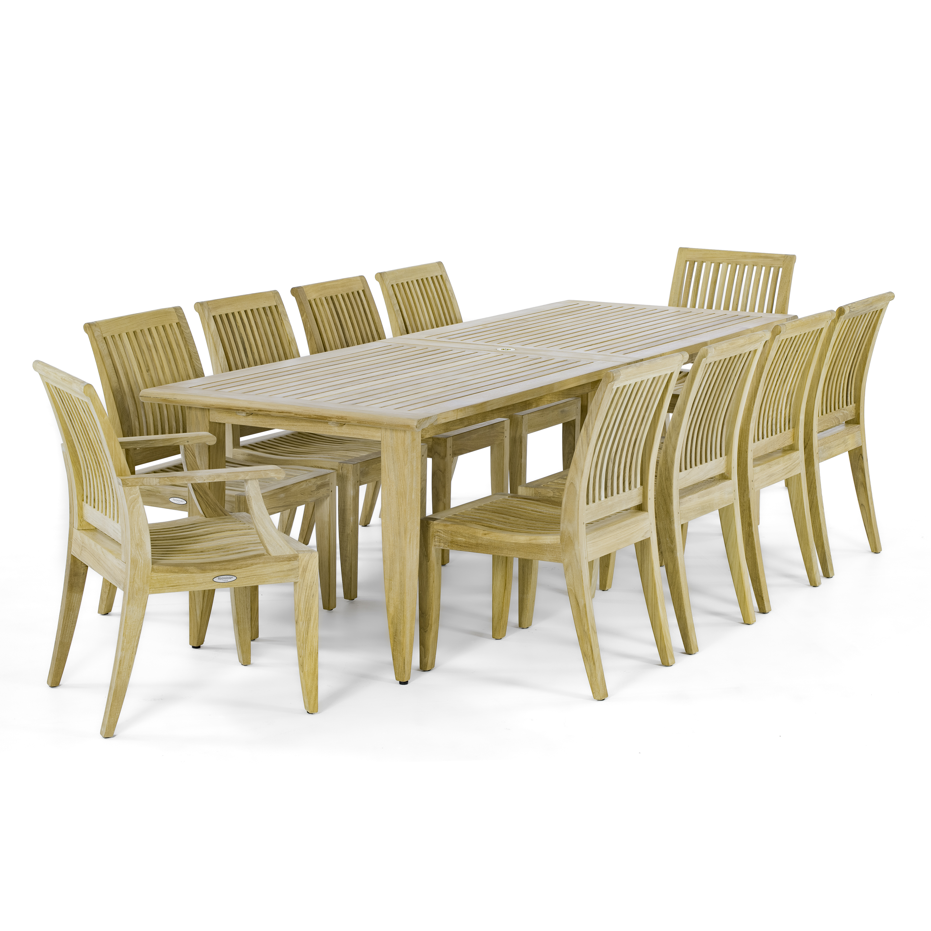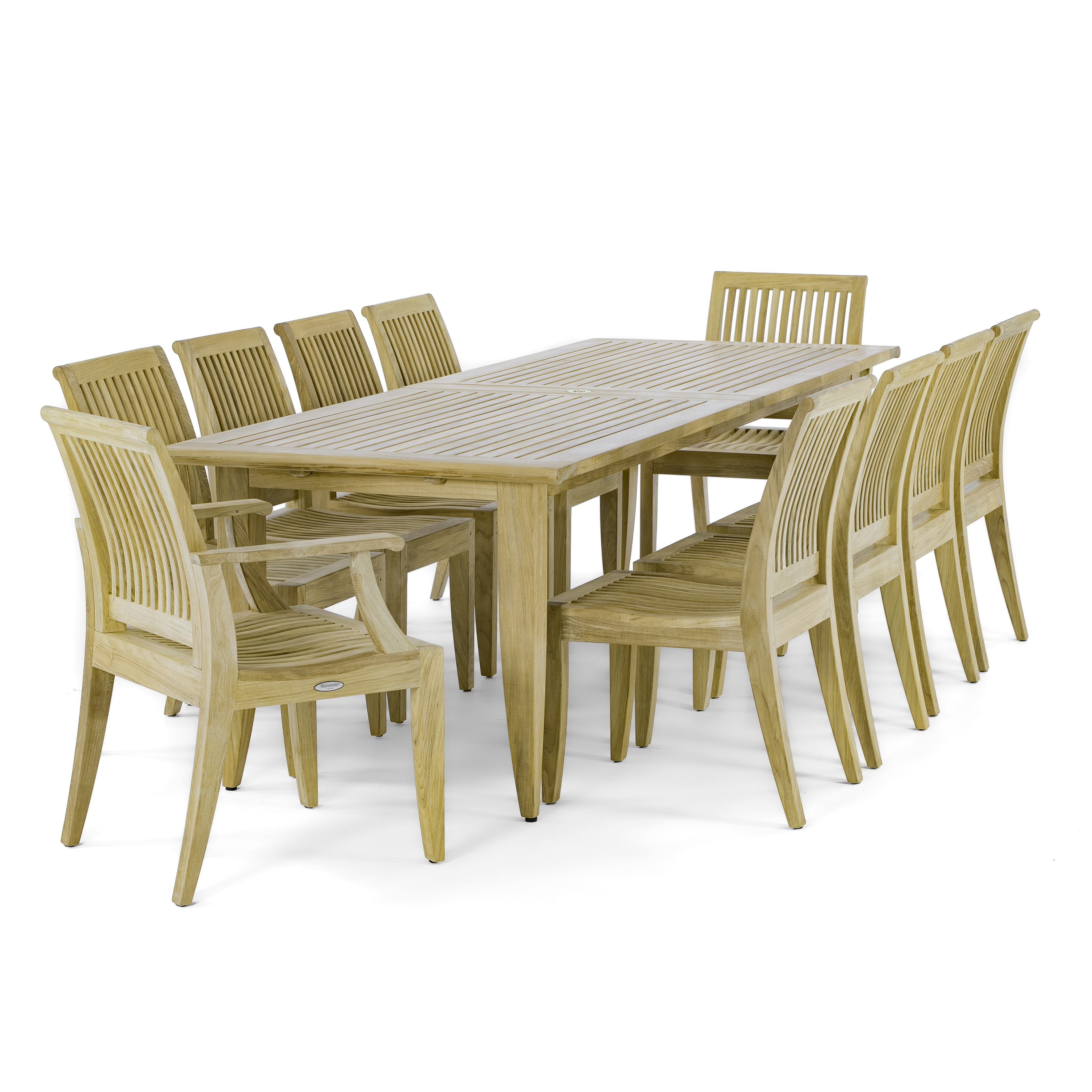 In this Grand Dining Set, the contoured backrests and scooped seating of the Laguna chairs maximize comfort for outdoor dining, while the Laguna 11FT Grand extension table allows you to adjust the set accordingly to the number of guests you are entertaining. The Laguna Collection has been designed with generous proportions and attention to detail, easily allowing it to blend well with both traditional and modern styles. An optional Teak Umbrella, Sunbrella Cushions, Teak Floor Tiles and Teak Lazy Susan are available for this set.