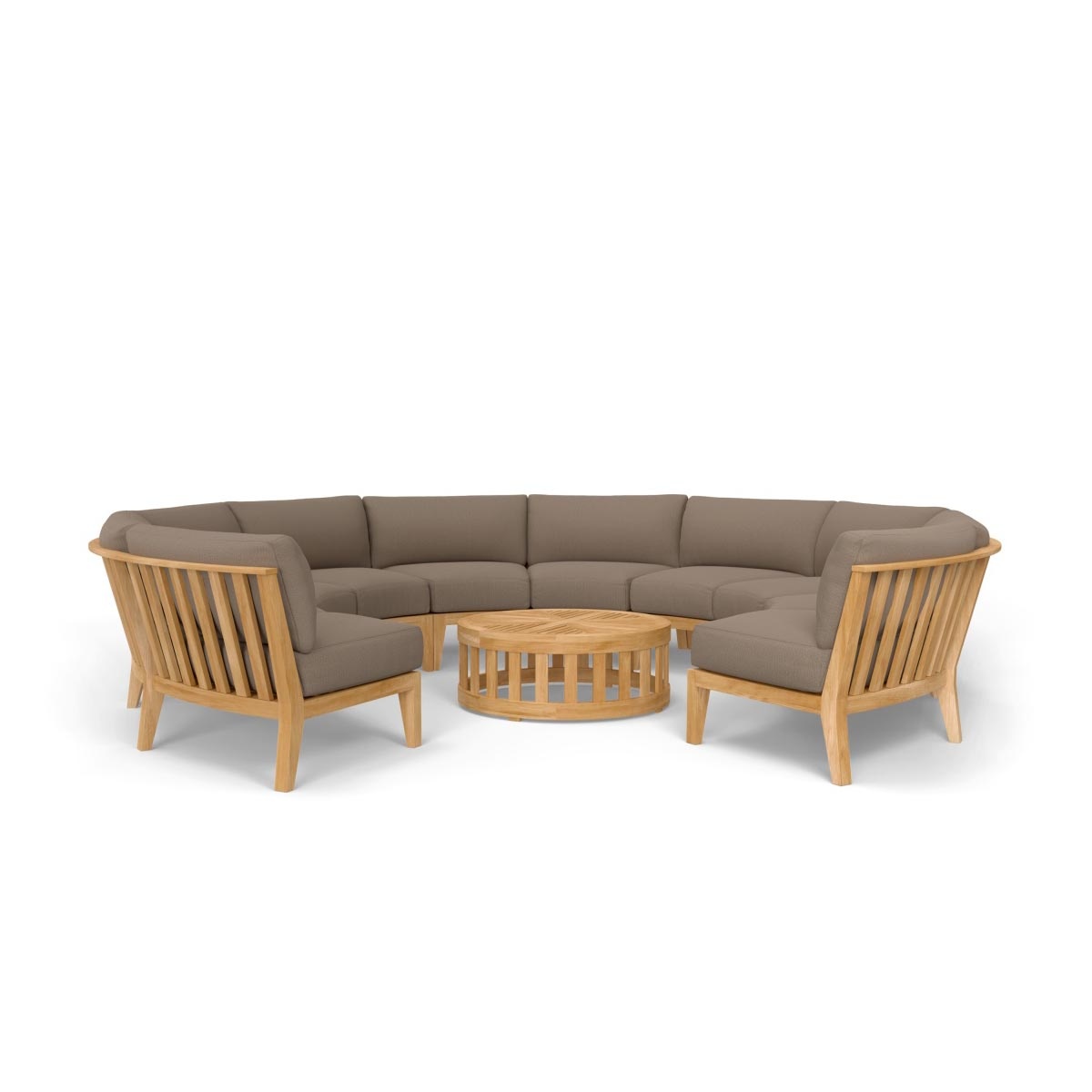 The welcoming shape, whimsical slats, and the warmth of premium Grade A Teak makes the Kafelonia Teak Lounge Sofa Set difficult to resist. Deep, plush seat cushions on generously proportioned frame allows ”unrestricted movement” for comfort in seating over extended periods of time. Lavish use of teak in the frame of the furniture with 5/8”slats ensures maximum structural strength while providing warmth and beauty in any space.