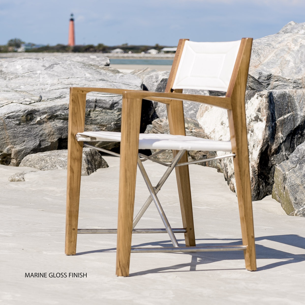 A reinterpretation of the classic director chair with a bold nautical lean, the Odyssey Folding Chair Set of 4 is deceptively light at a mere 18 lbs while it is more than sturdy to endure the test of time and the outdoors. The seat and backrest are made with high performance Sunbrella Natte fabric, cradling the body for lasting comfort. With its sleek, slender lines, the Odyssey Folding Chair will fit seamlessly on the deck of a yacht, the balcony of a high-rise, or the poolside of a home.