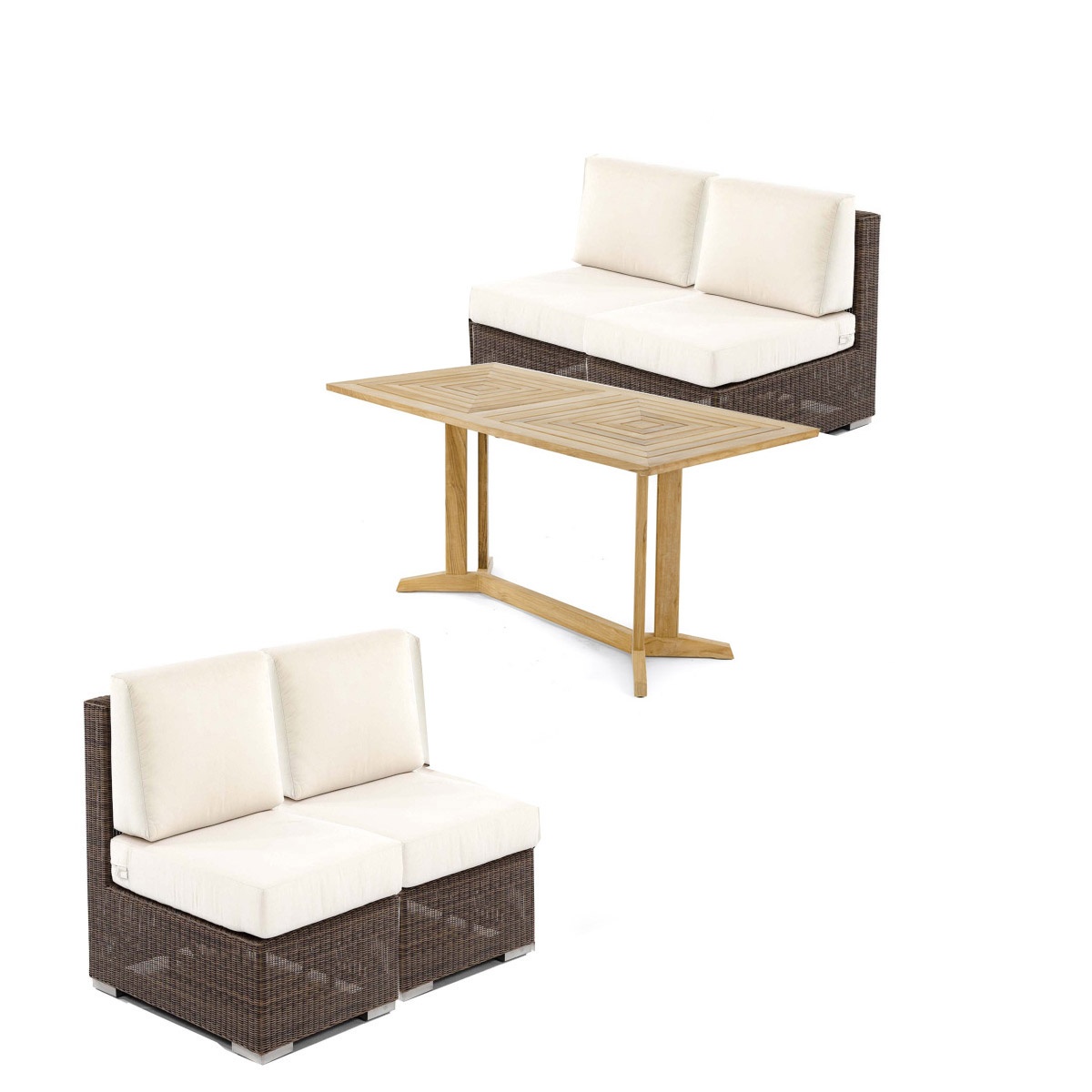 6 ft Pyramid Teak Table: Glides Malaga Wicker Slipper Chair: Medium Levelers |