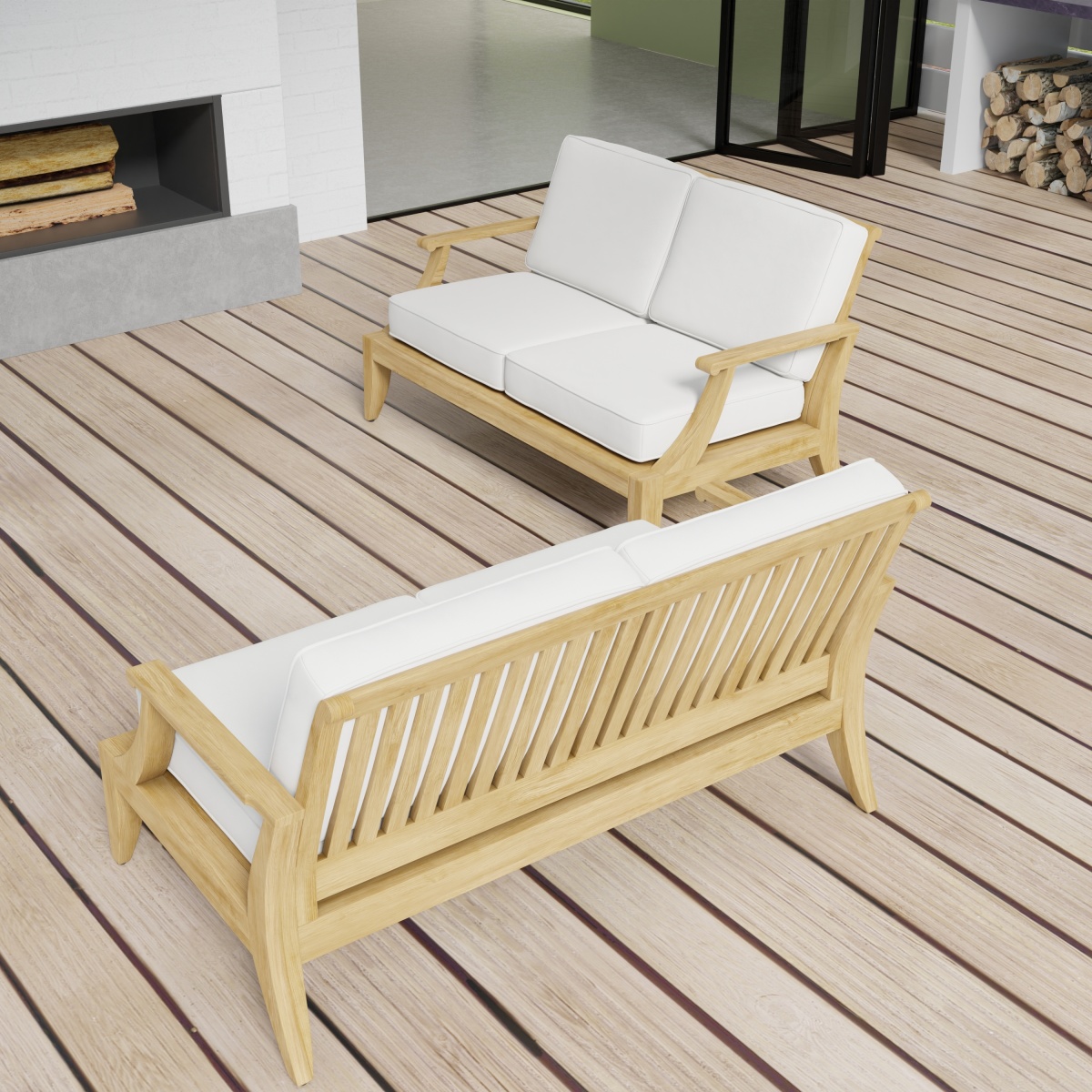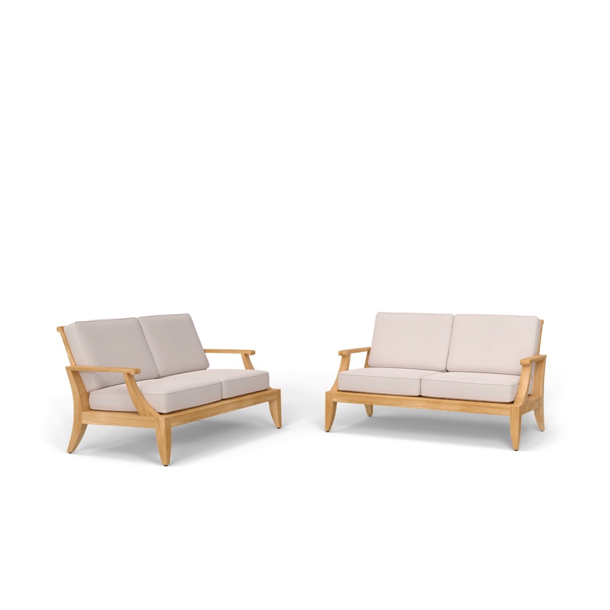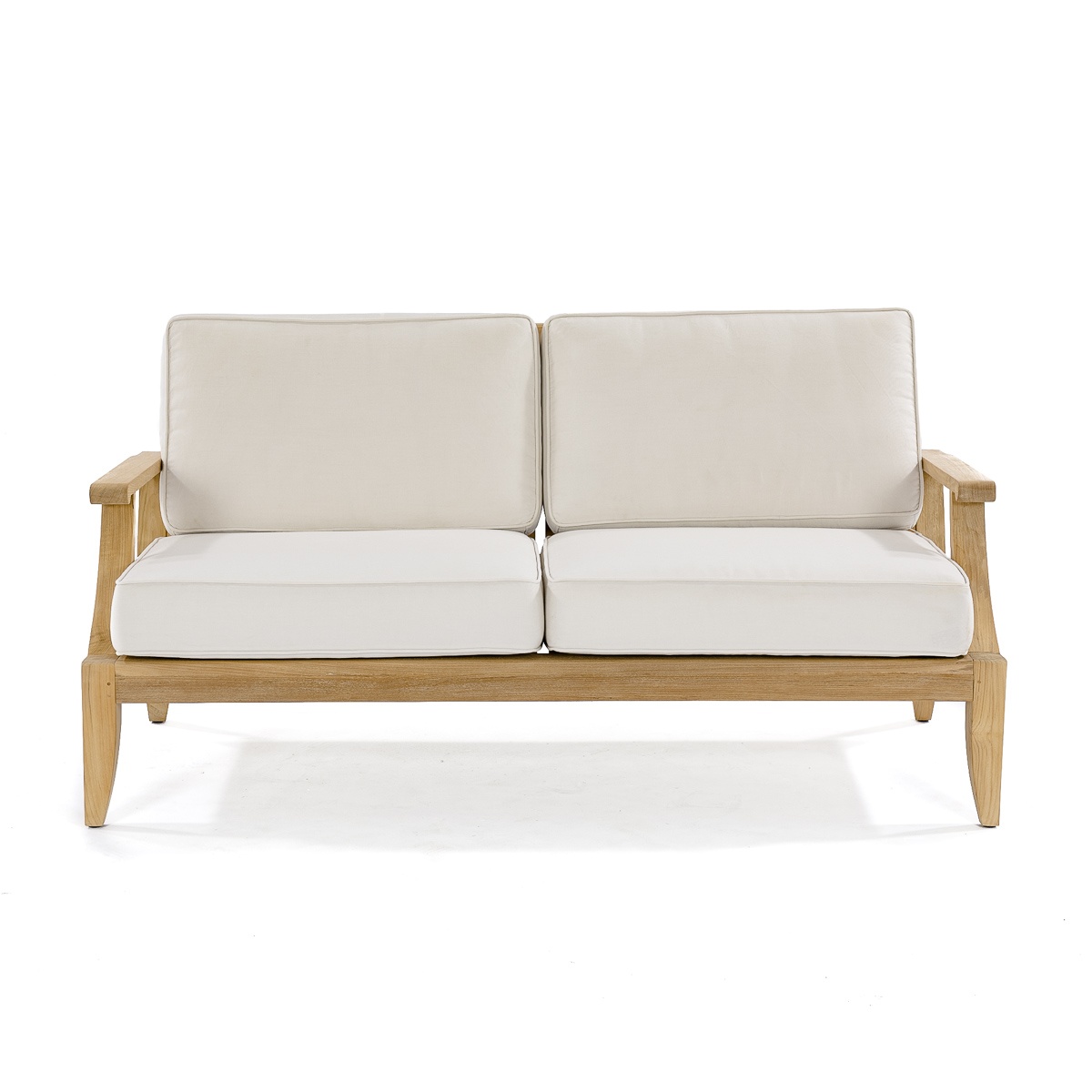 Part of the Laguna Collection, uniting classic style with clean architectural lines, this solid teak Laguna Loveseat Sofa has an inside seat length of 57.5 in. Generously proportioned to offer extra room for lounging, this loveseat will be at home indoors, on the veranda, or the garden.