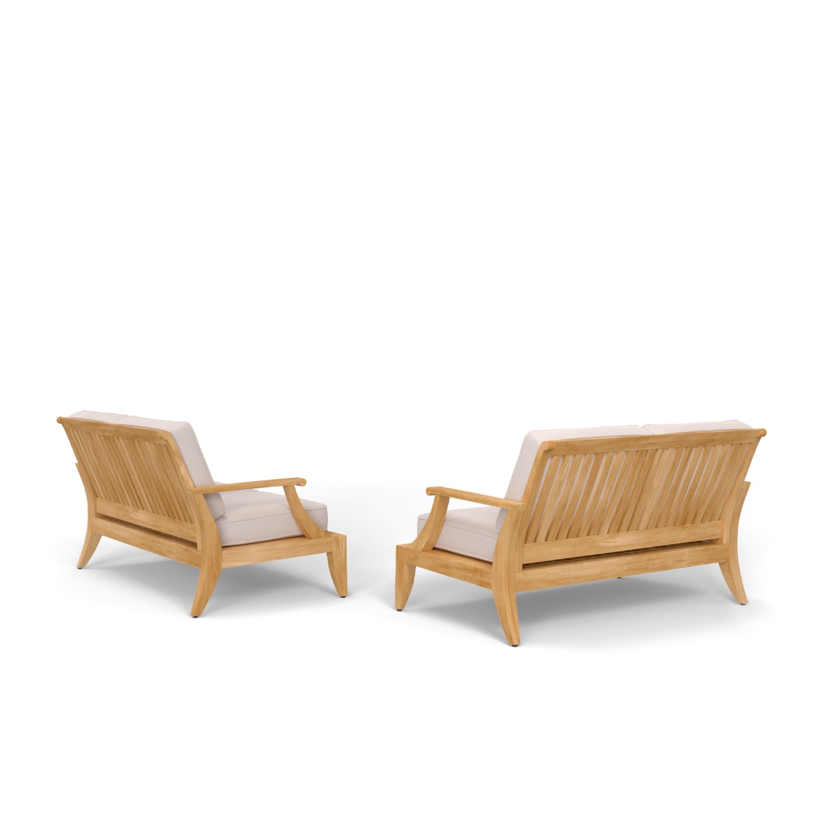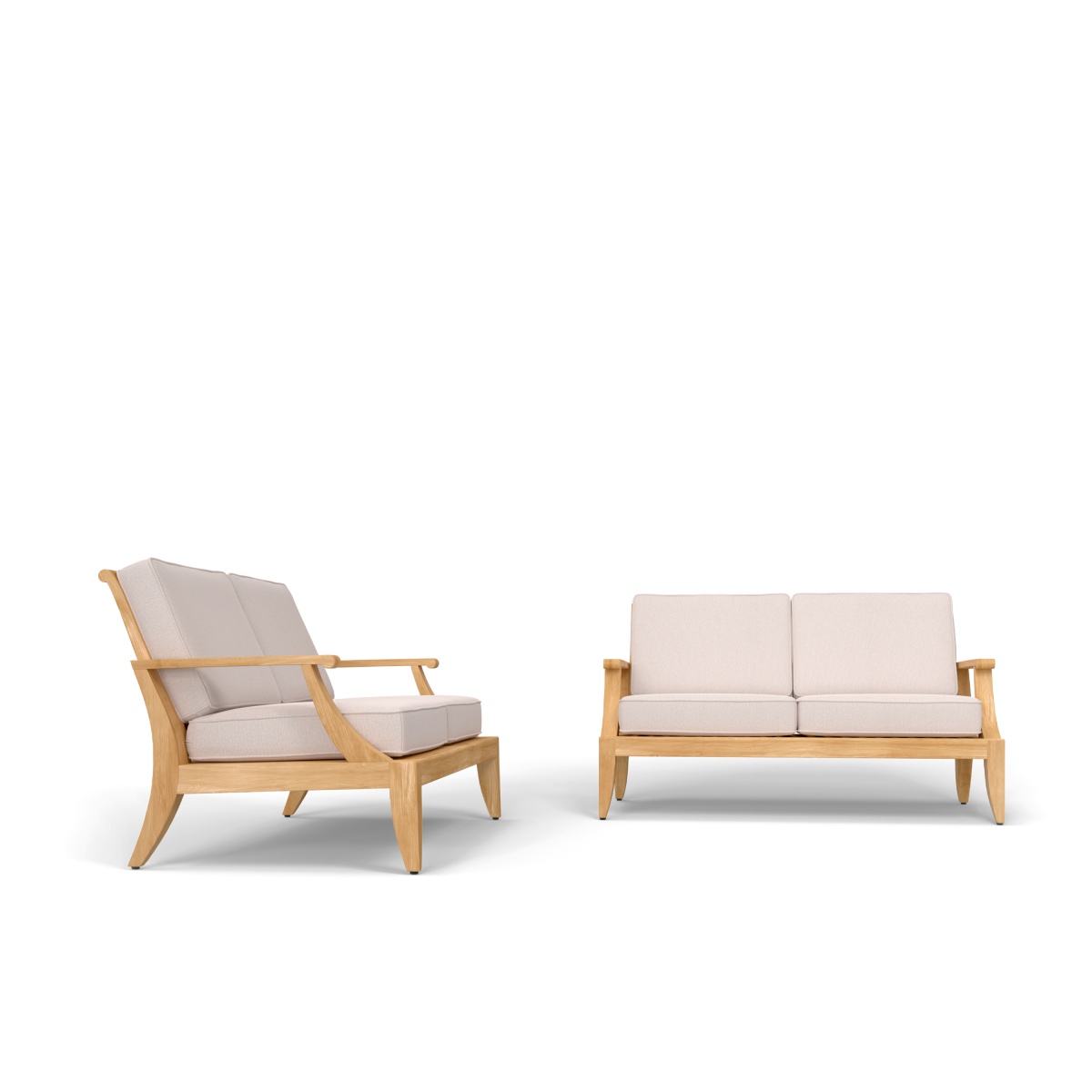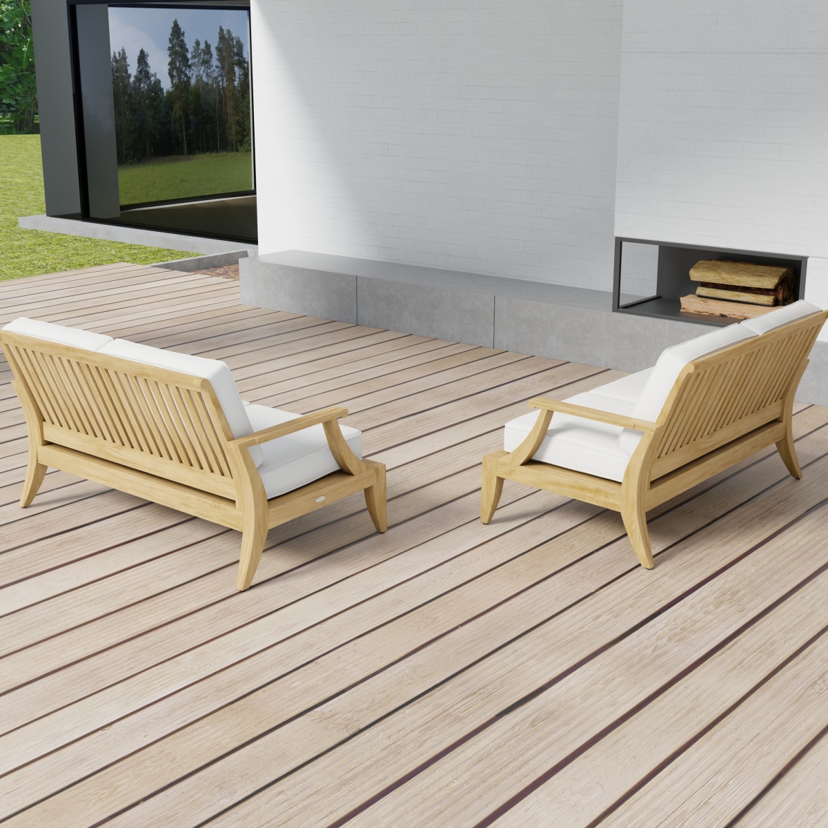 Part of the Laguna Collection, uniting classic style with clean architectural lines, this solid teak Laguna Loveseat Sofa has an inside seat length of 57.5 in. Generously proportioned to offer extra room for lounging, this loveseat will be at home indoors, on the veranda, or the garden.