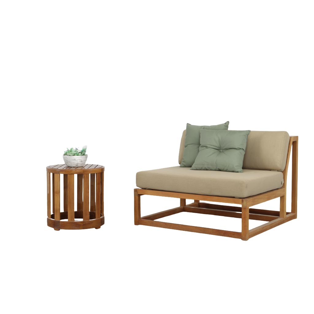 Inspired by the carefree lifestyle of casual luxury, the Maya Slipper Chair & Kafelonia Side Table Set has a transitional appeal that will fit in any traditional or modern setting. Solid teak wood portions, attention to detail, and plush deep cushions not only make the chair exceptionally comfortable, but one that will endure the test of time and the outdoors.