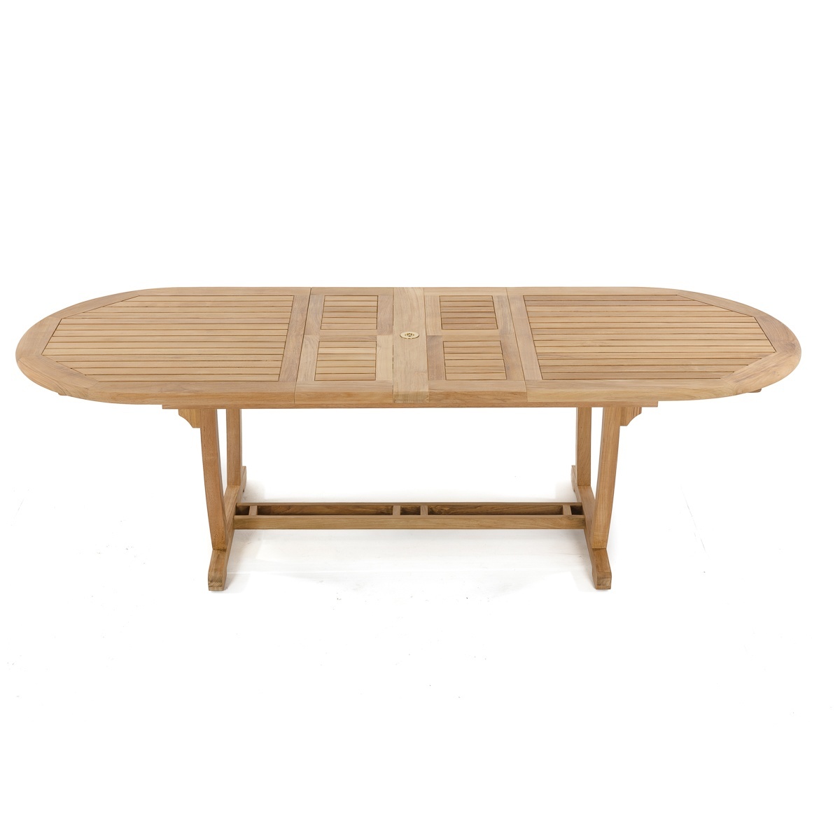 The Montserrat Teak Table has a sense of refinement with an understanding of functional requirements with its bowed legs and oval design. Featuring dual butterfly extension leaves integrated into the table, the Montserrat can seat 6-10 as needed, and can fit our teak umbrella in both positions. While the table is durable for years in the outdoors, it is just as suitable for the indoors. The Montserrat Extension Table accommodates all standard height Westminster Teak Dining Chairs.