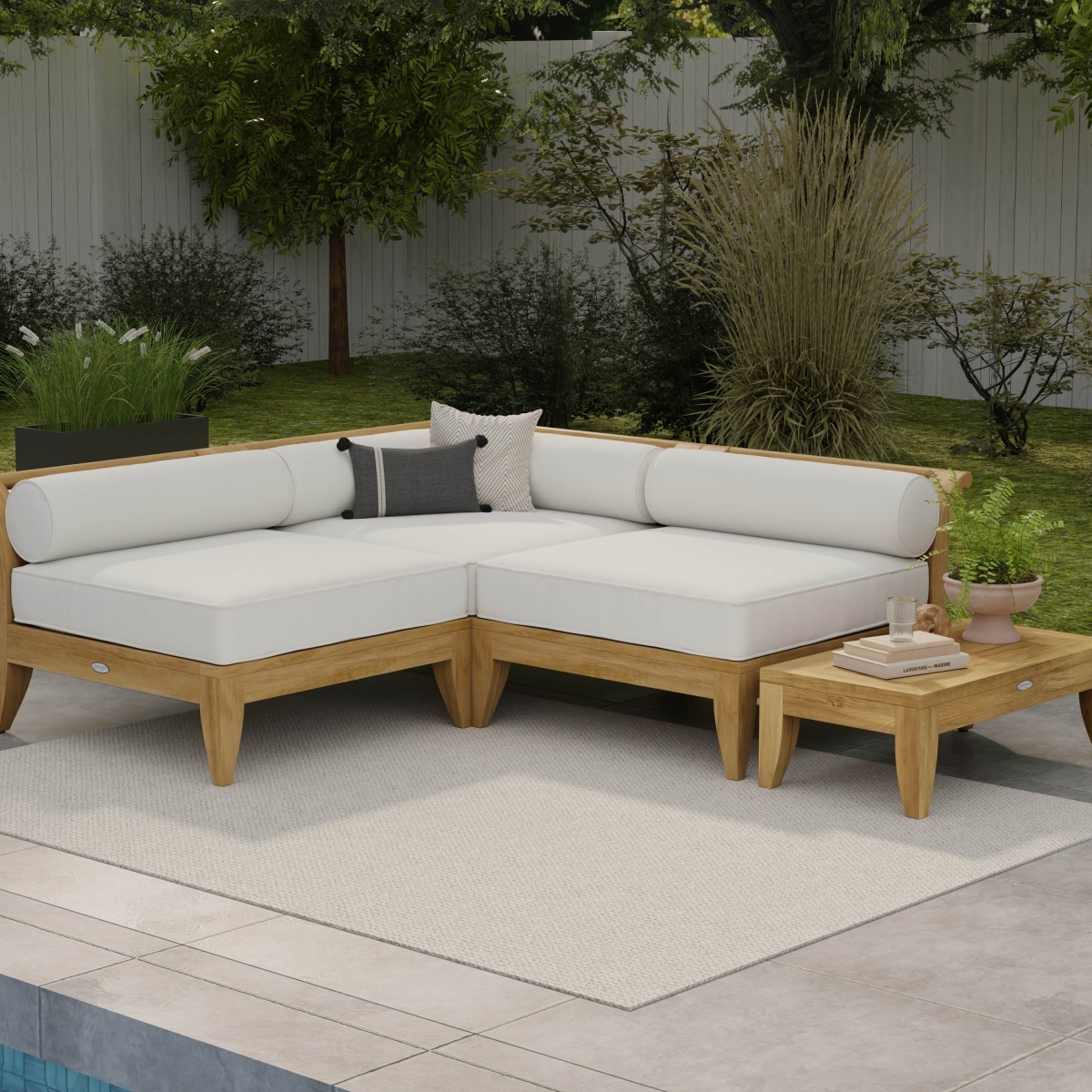 The Aman Dais 4 pc Teak Sectional features: