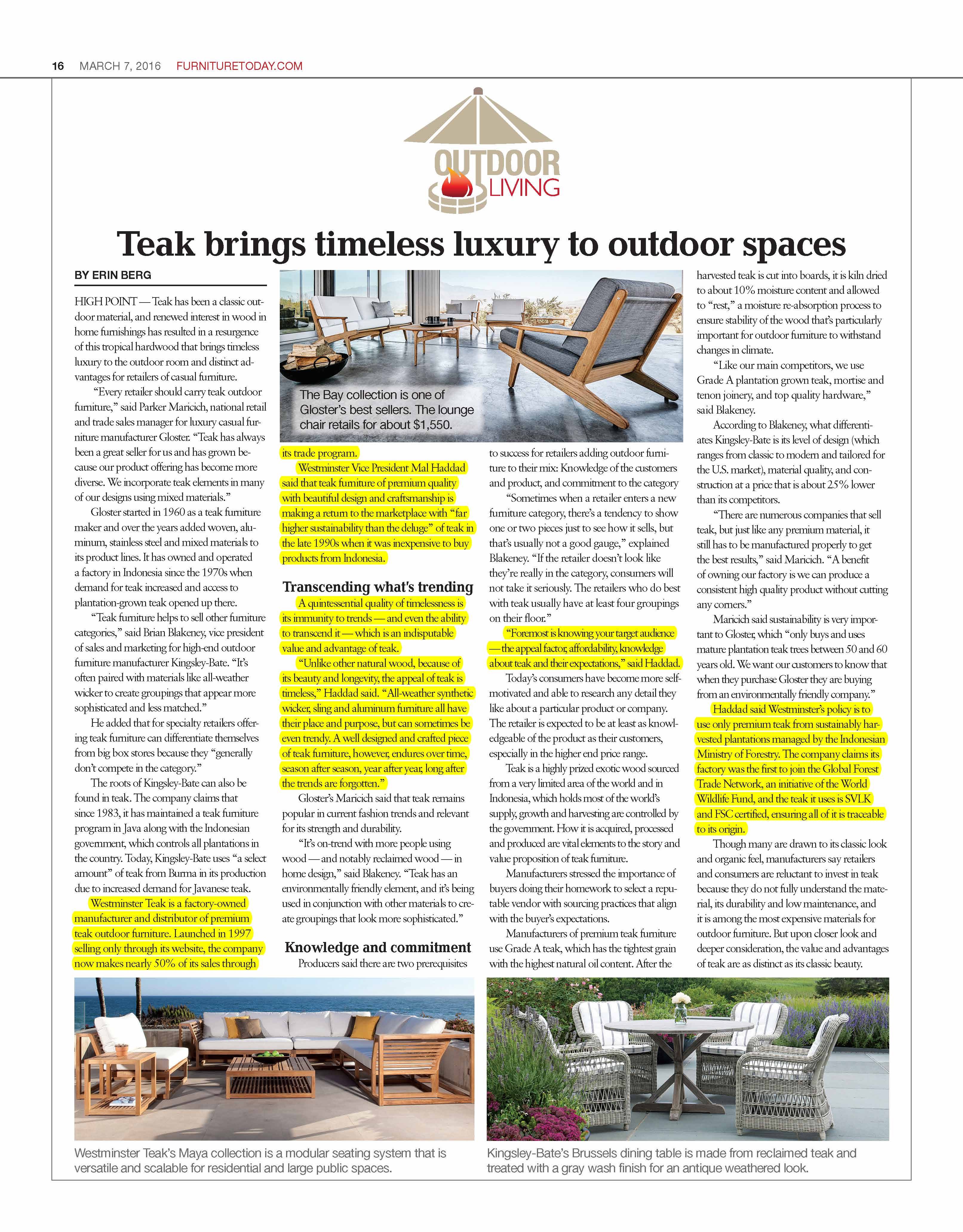 June 27, 2023 Corporate VP and Product Designer of Westminster Teak shares some of his thoughts with Orange Coast Magazine on what makes the company different: Social Responsibility in Sustainability, Timeless Design, and the Uncompromising Commitment to Customer Service by Orange Coast magazine |