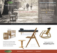 LOS ANGELES, CA - 8.28.2015 We are pleased to announce that Westminster Teak has teamed up with Annika Sandberg of "Hospitality Turnkey" (Hospitality!) to display Westminster Teak Furniture at "Hospitality!'s" showroom in the nationally renowned LA Mart, the West Coast's premier collection of design and product showrooms. Event |