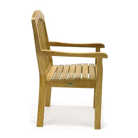 The Curved Back Teak Armchair is a contemporary expression of traditional garden teak using quality craftsmanship, resulting in a feel of warmth and beauty. This outdoor dining chair is ergonomically designed with a contoured arm and seat for maximum comfort. Old charm feel meets modern day design.