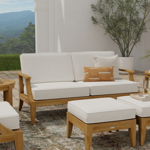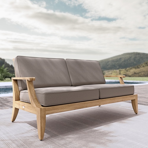 Part of the Laguna Collection, uniting classic style with clean architectural lines, this solid teak Laguna Loveseat Sofa has an inside seat length of 60 in. Generously proportioned to offer extra room for lounging, this loveseat will be at home indoors, on the veranda, or the garden.