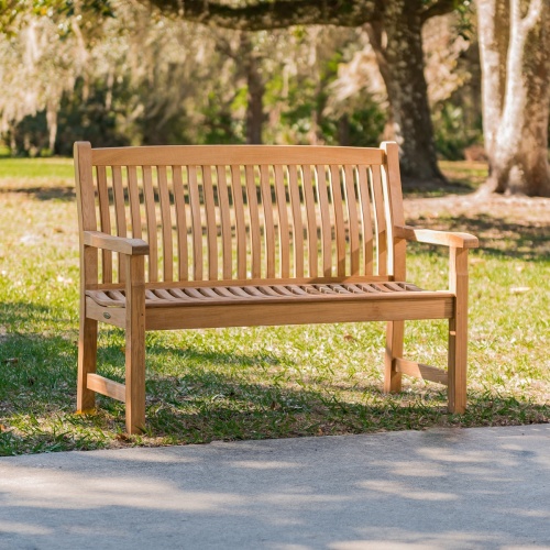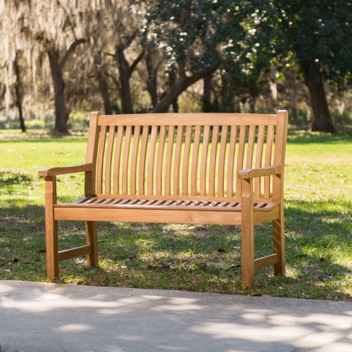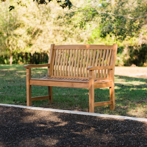 The Veranda Collection features the 4 ft, 5 ft and 6 ft versions of this teak outdoor bench. The ergonomic design in the contoured backrest and the scooped seat provides an exceptional level of outdoor comfort without cushions. Durable enough for the outdoors and just as suitable indoors, the Veranda teak bench will pass the test of time in any weather. The Veranda teak benches are made from the same quality that was rated "Best Overall" by the Wall Street Journal.