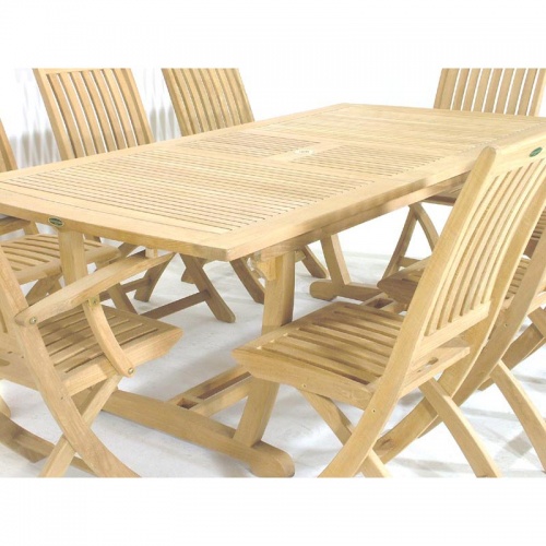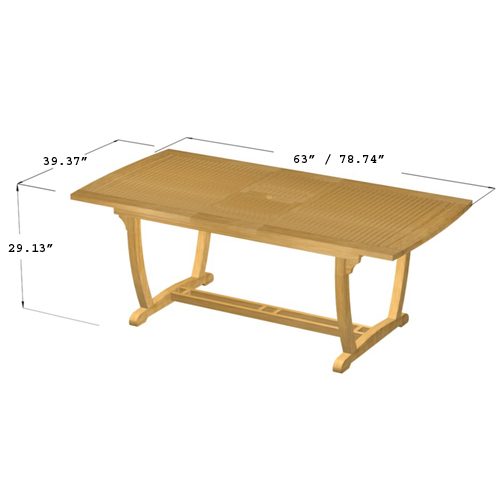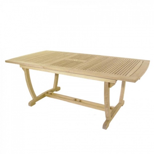 Cayman Veranda Extendable Teak wood table that seats 4 to 8 people. Long lasting and exquisite, this teak dining table is a magnificent centerpiece with it's new curved leg design. Accepts an umbrella when in the extended position ONLY.