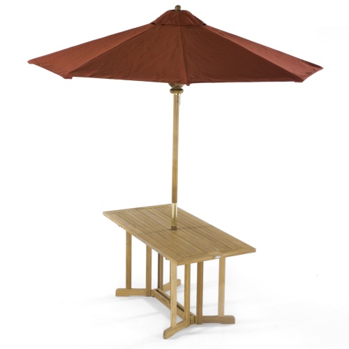 The Nevis 5 ft Rectangular Folding Table with 316L stainless steel hardware can seat up to six. Keep it as an entry table or sofa table, and when you host any social gathering, quickly extend your dining capacity. When not in use, this table is easy to store. In the outdoors, it can accept our teak umbrella and Parasol Base.