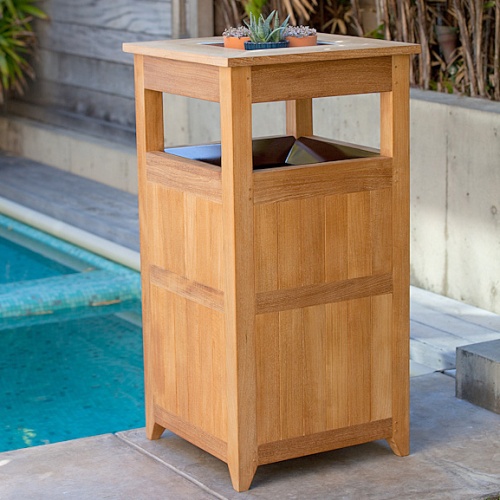 The Palazzo Collection of towel and trash receptacles bring unsurpassed detail and style to the otherwise mundane. The Palazzo III Receptacle will find its home in any space; from porte-cocheres and entryways, to lobbies and lanais. Apart from the beauty and warmth it exudes, solid teak also allows for outdoor use, season after season. Each receptacle comes with a powder coated aluminum open lid.