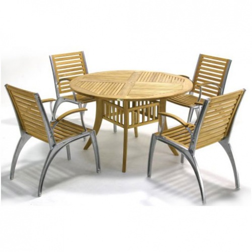 The 2003 Westminster Teak Lava Armchair is lightweight and designed with an upscale Silver Black Dot Epoxy Powder Coated finish. The finish is impeccable and unique in every way. The teak wood used in this armchair is premium grade A teak, with the smoothest finish in the industry. Lifetime warranty.