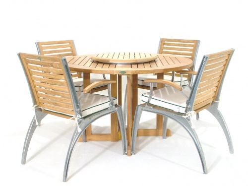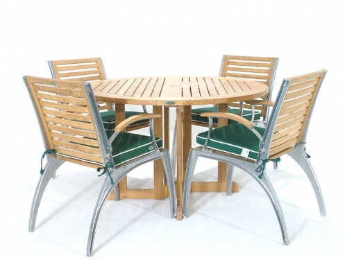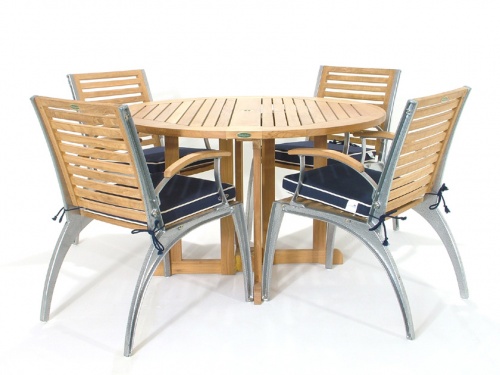 Barbuda Table, Lava Armchair, Set for 4 comes with 1 Barbuda Folding Teak Table and 4 Lava teak aluminum Arm Chairs. Table can be folded for easy storage.