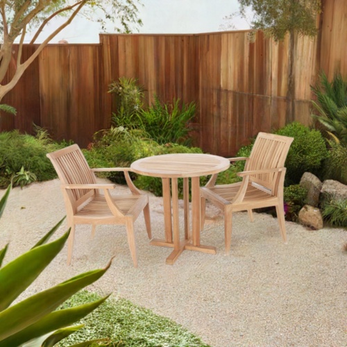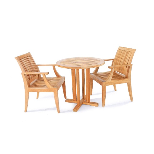 The refined luxuriousness of this Teak Furniture Set for two has durability but also elegance in mind. Invite your guests to join you all season at your outdoor or indoor teak set to celebrate, entertain or just relax. Whether you have chosen this outdoor teak furniture for the comfort of the generous Laguna Teak Dining chairs or the convenience of the Teak Round Table, Westminster created this indoor/outdoor teak bar furniture set with your entertainment in mind.