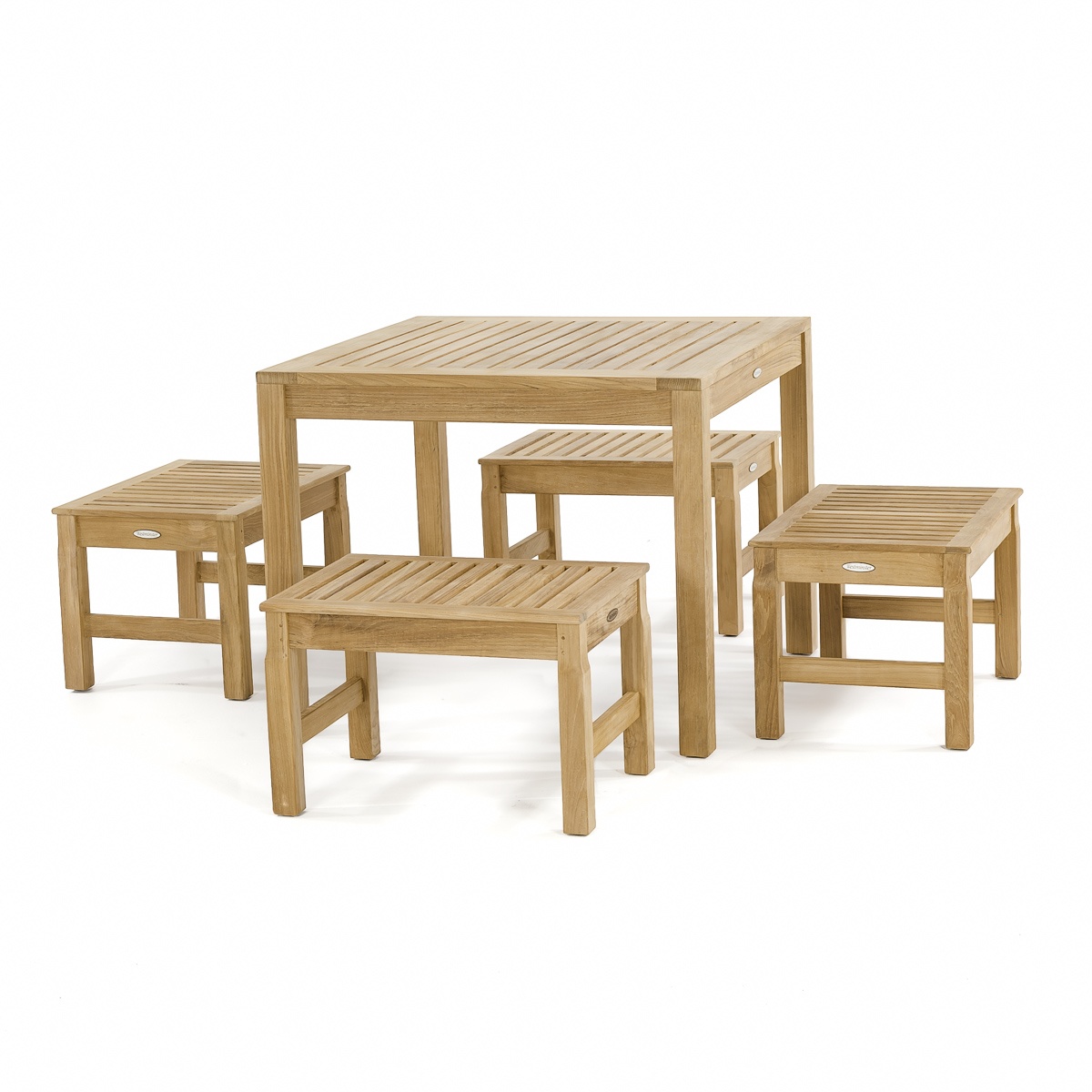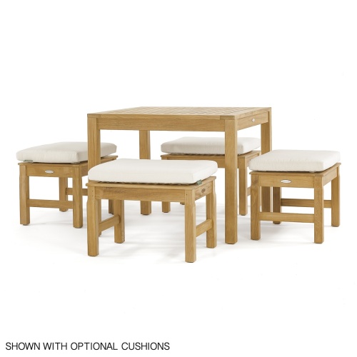 With traditional craftsmanship and strong forms, this 5pc Brunswick Cafe Set is as sturdy as it is enduring. The stools, versatile in nature, support up to 325 lbs and can be used as shower stools or ottomans. Paired with the bistro table, this set exudes a sense of harmony and permanence.