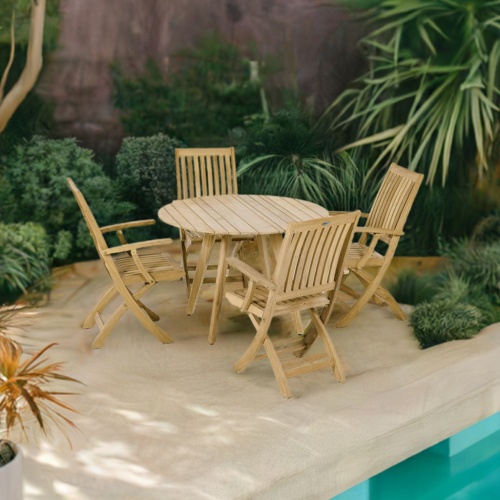 With both traditional and modern appeals, the Barbuda Surf 5 piece Dining Set is defined by convenience and versatility. First impressions hardly reveal that the Barbuda Chairs fold effortlessly, resulting in an organic and exceptionally comfortable chair. Though lightweight, the Barbuda Dining Chair is visually robust and structurally strong given its solid stature. Drawing inspiration from Scandinavian architecture, the arbitrary yet clean lines of the Surf Table lend it a light and airy appearance. Its irresistibly smooth tabletop allows it to be an excellent choice for the indoors, though it is more than robust to endure the test of time and the outdoors. Angled legs add stability while giving the impression of spaciousness.