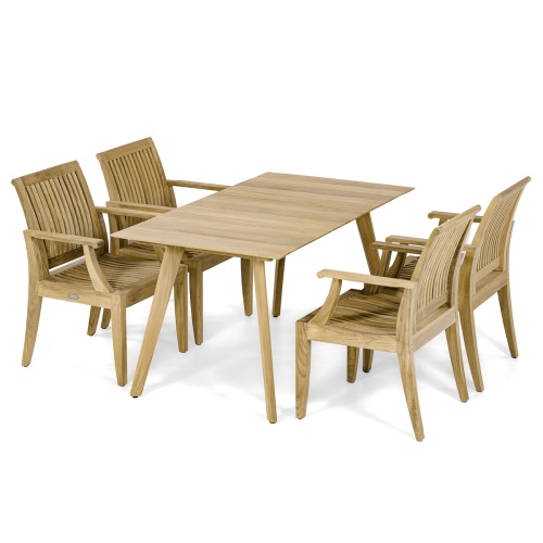 With the geometric beauty and form of the Surf Rectangular table and the contoured backrests of the Laguna chairs, this set promotes more intimate dining on the patio or in restaurants. Drawing inspiration from Scandinavian architecture, the arbitrary yet clean lines of the Surf Table lend it a light and airy appearance. Its irresistibly smooth tabletop allows it to be an excellent choice for the indoors, though it is more than robust to endure the test of time and the outdoors. Angled legs add stability while giving the impression of spaciousness.