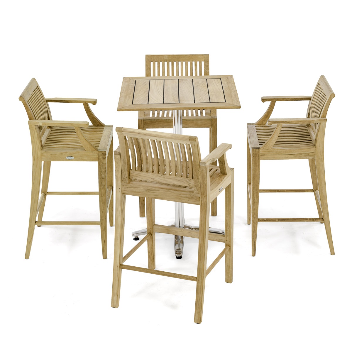 With the interplay of 304 Stainless Steel and Teak Wood, the Vogue Somerset Square Bar Set exudes a refined sense of style. Gently curved backrests and seats of the Somerset Backless Bar Stools offer lasting comfort even without cushions. The tabletop of the bar table is caulked with Sikaflex, a high-grade polyurethane sealant that prevents liquids from seeping through, as well as providing a nautical appeal.