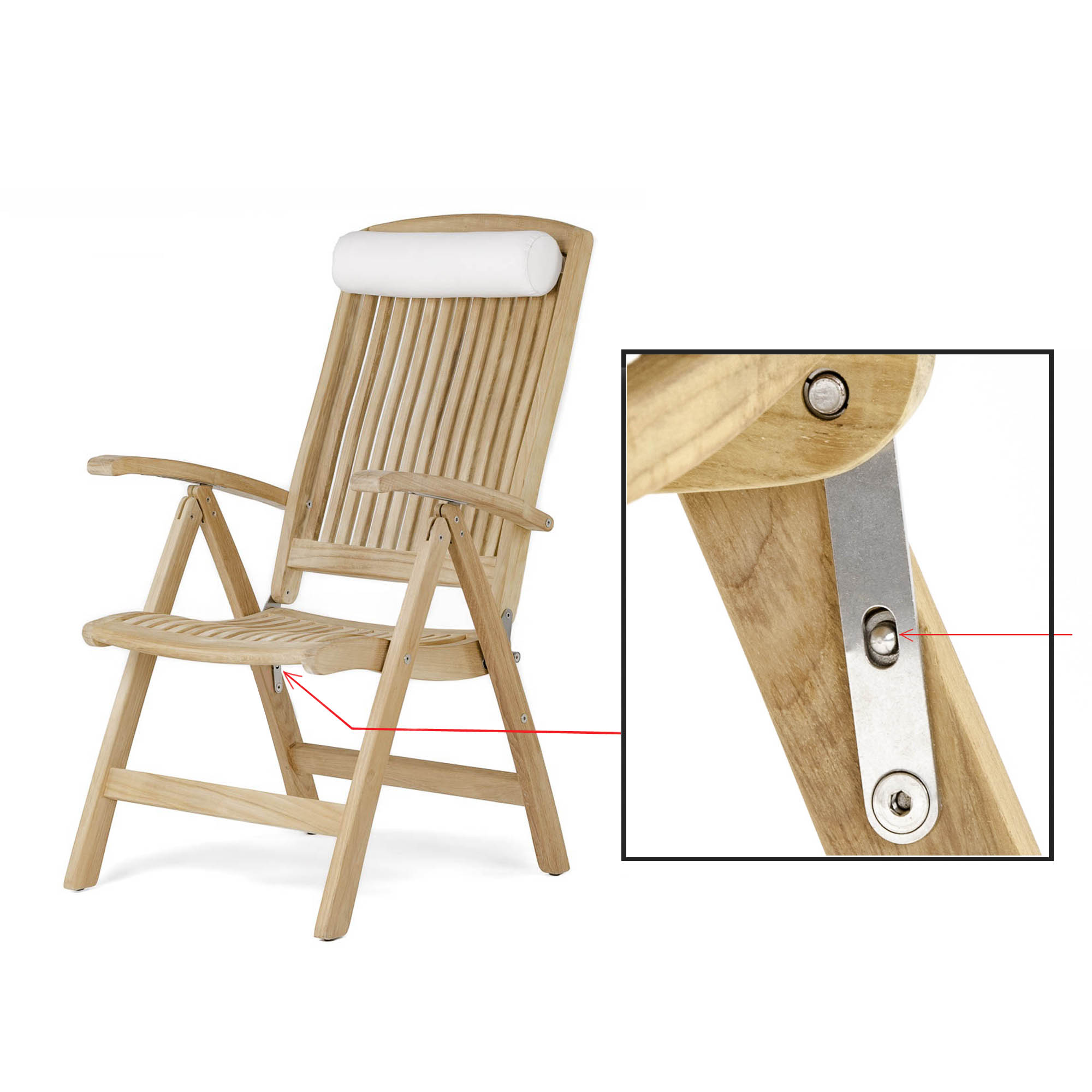 Wonderful chair. Classic lawn chair style and holds 250 lb. person. The reclining feature, and the fold up to store feature will be appreciated. We are using these outside around a campfire (along with some Barbuda Captain Steamer chairs to mix in) and they immediately made the wooded scene look "classic". We intend to let them weather to blend in with our woods. These chairs are comfortable and sturdy and they even do well on uneven lawn. Our large family gatherings just became much more comfortable. --Penny M, LaGrange, Indiana, March 13, 2018